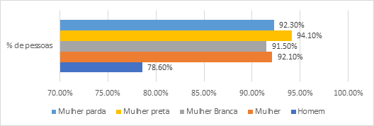 Porcentagem de pessoas que realizaram afazeres domésticos no próprio domicílio ou em domicílio de parente (Brasil – 2019)